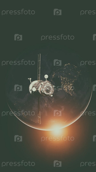Космический корабль Прогресс вращается вокруг Земли