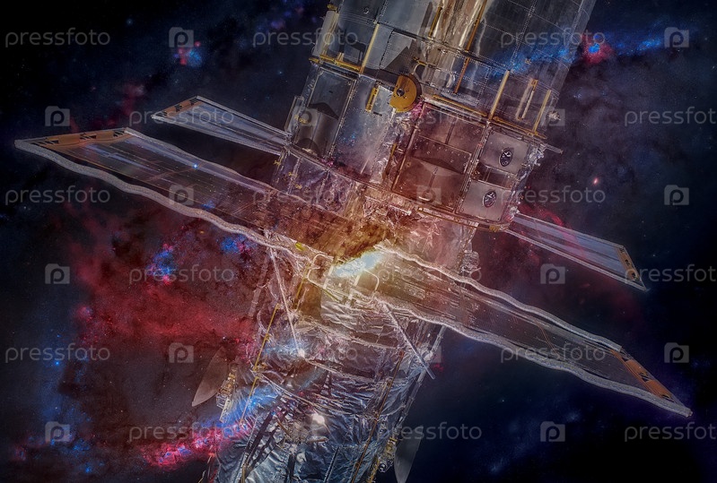 Космический телескоп Хаббла и туманность. Двойная экспозиция