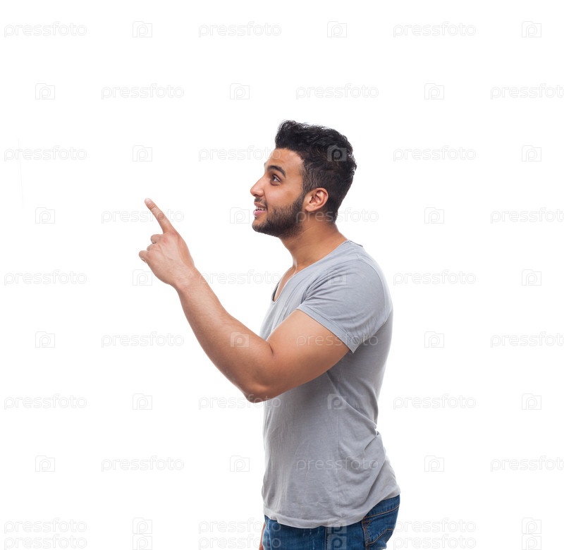 Красивый парень указывает