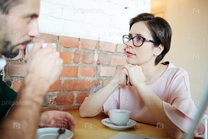 Современная бизнес-леди, глядя на партнера со вниманием