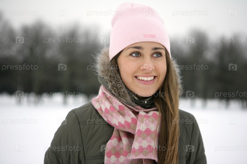 Улыбающаяся девушка на прогулке зимой