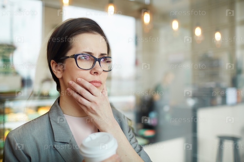 Задумчивый бизнесмен с чашкой кофе в кафе