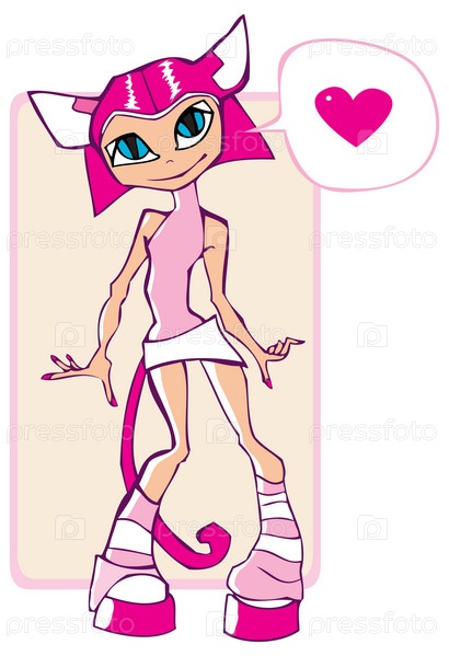 Розовая милая девочка-кошка. Векторная иллюстрация, изолированная на белом фоне