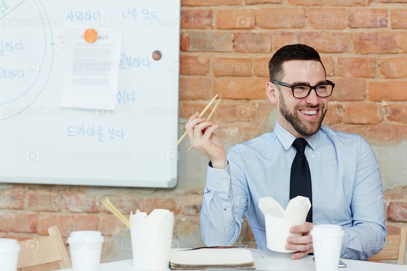 Счастливый парень на обеде