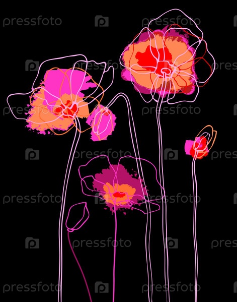Розовые маки на черном фоне. Векторная иллюстрация