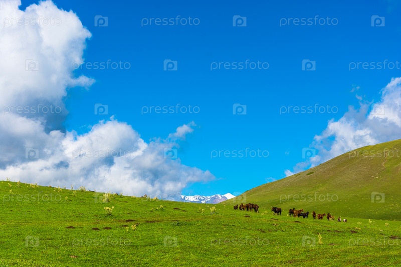 Лошади на горном пастбище, Кыргызстан