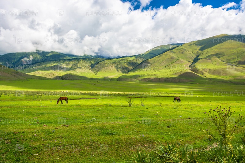 Лошади на горном пастбище, Кыргызстан