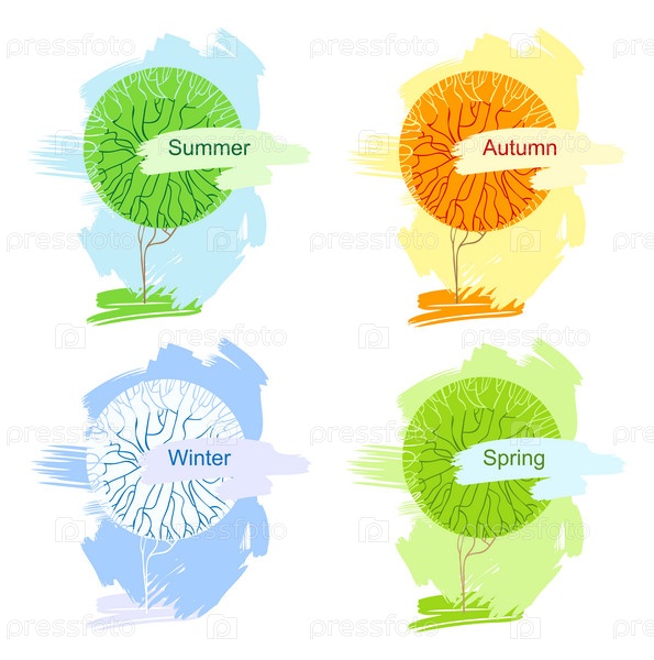 Абстрактные векторные деревья. Четыре сезона. Иллюстрация, изоляция