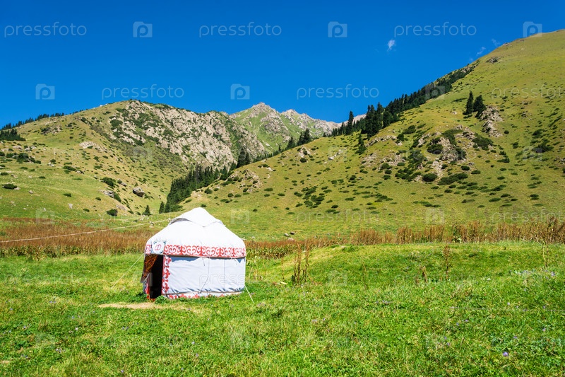 Белая юрта в горах Кыргызстана