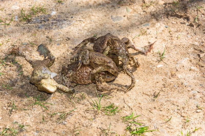Спаривание лягушек на земле