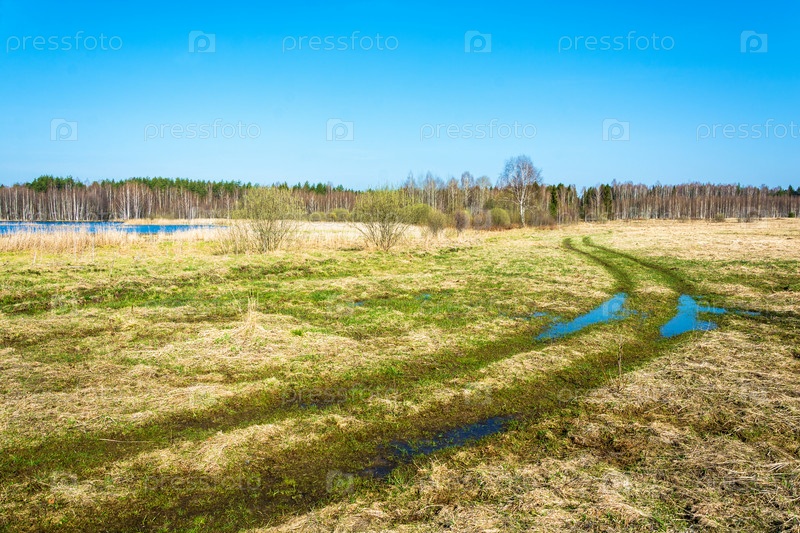 Извилистая дорога через поле в лес