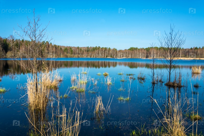 Небольшое лесное озеро ранним утром