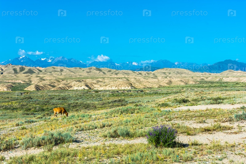 Корова на пастбище, Кыргызстан