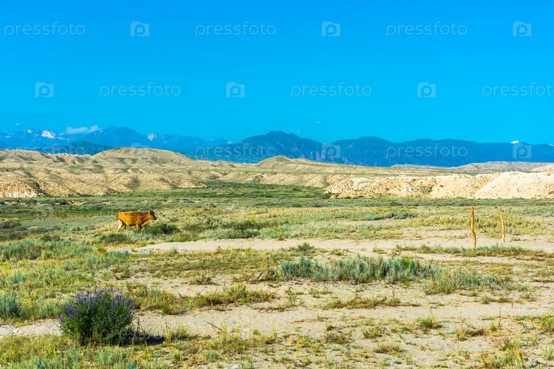 Корова на пастбище, Кыргызстан