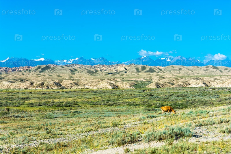 Корова на пастбище, Кыргызстан