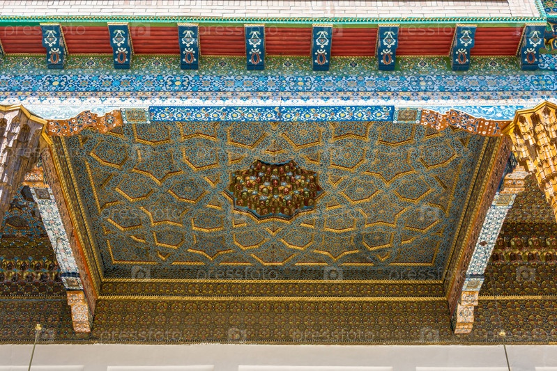 Расписной потолок веранды в мемориальном комплексе Бахуддин Накшбанди в Бухаре