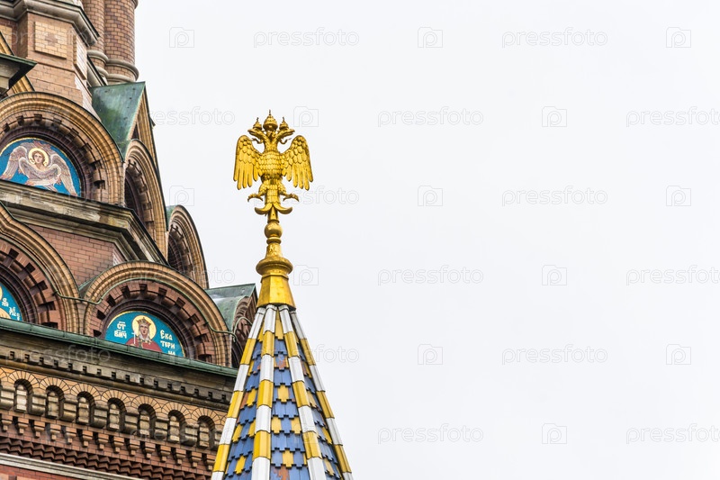Двуглавый орел на башне Спаса-на-Крови в Санкт-Петербурге, Россия