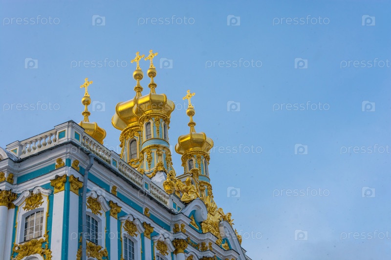 Золотые купола Екатерининского дворца в Пушкине, Санкт-Петербург, Россия