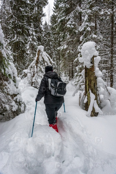Турист в зимнем лесу