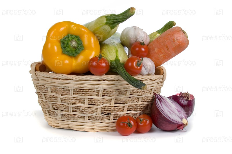 Свежие овощи в корзине, изолированные на белом фоне