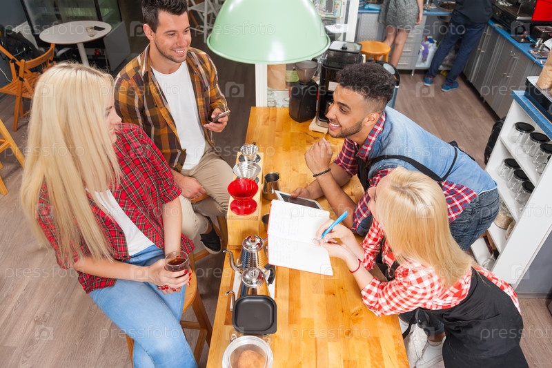 Бариста, обслуживающая клиентов