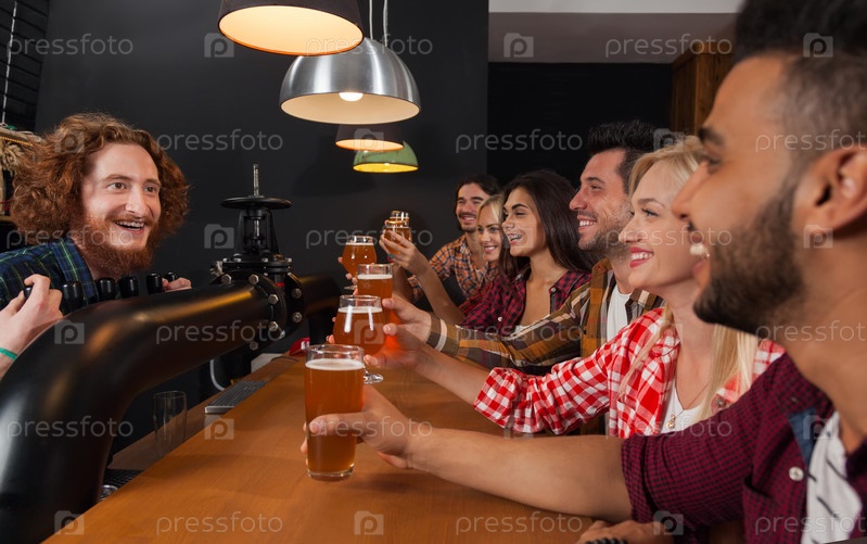 Друзья в деревянном пабе
