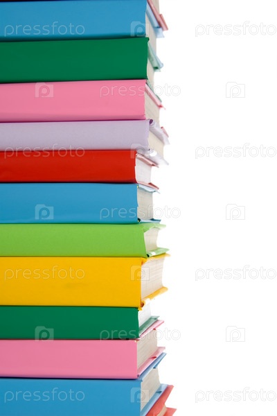 Стопка ярких книг на белом фоне