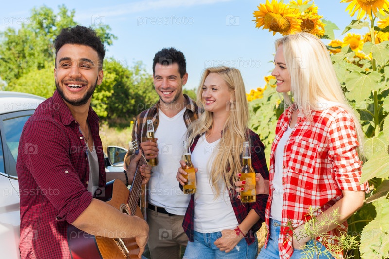 Друзья с пивом на открытом воздухе