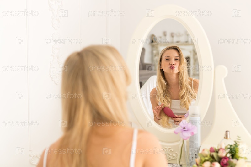 Блондинка перед зеркалом