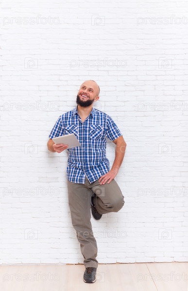 Бородатый парень с планшетом