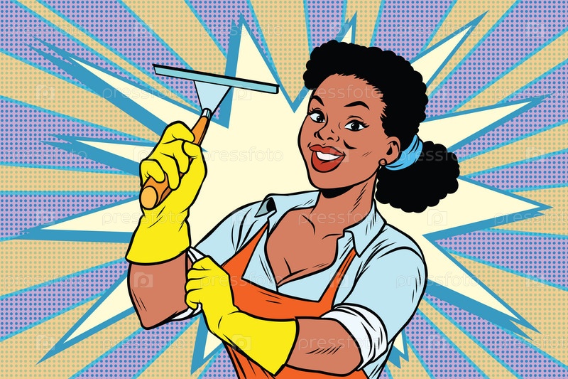 Девушка со скребком для очистки окон