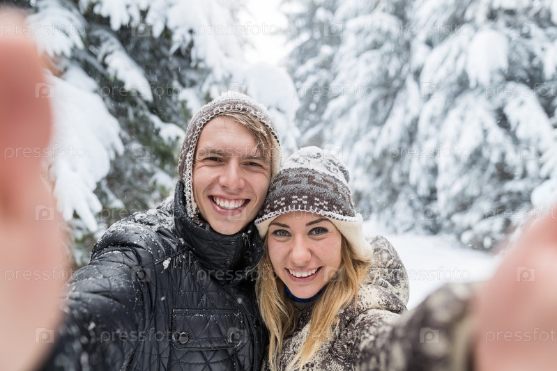 Романтическая пара в зимнем лесу