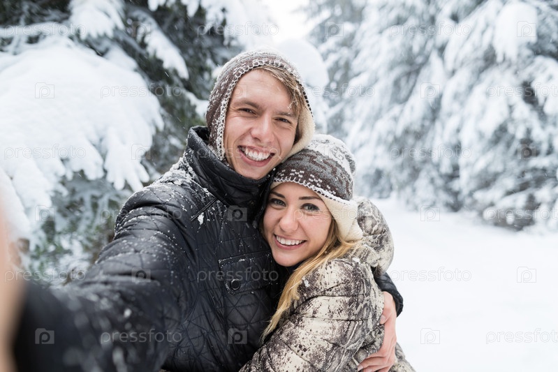Романтическая пара в зимнем лесу