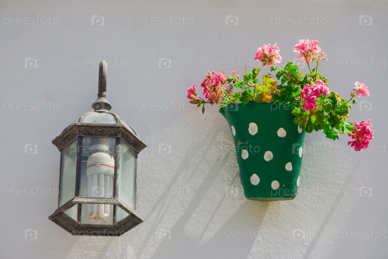Зеленый цветочный горшок и фонарь