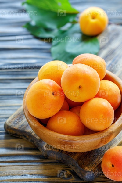 Деревянная чаша со спелыми абрикосами
