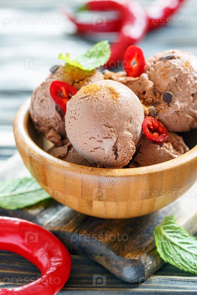 Чаша с шоколадным мороженым и перцем чили