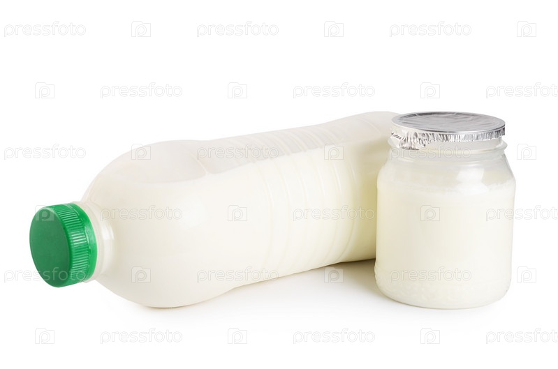 Молоко и йогурт на белом