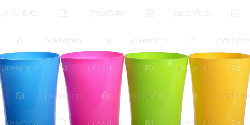 Пластиковые стаканчики на белом фоне
