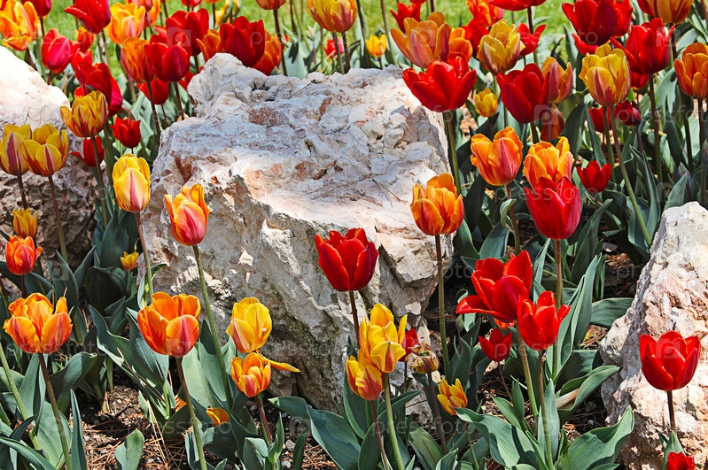 Красивые тюльпаны на клумбе