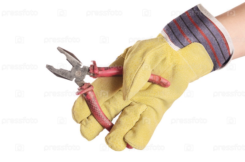 Плоскогубцы в руке человека на белом