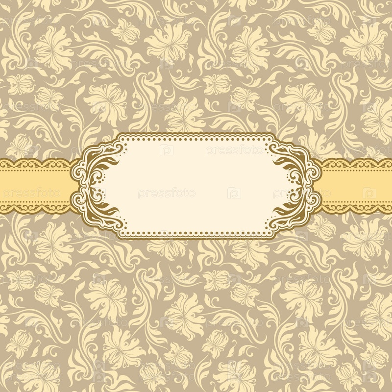 Рамка для поздравительной открытки в ретро-стиле на фоне с бесшовным орнаментом