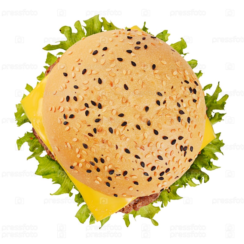 Гамбургер с котлетой и сыром на белом фоне