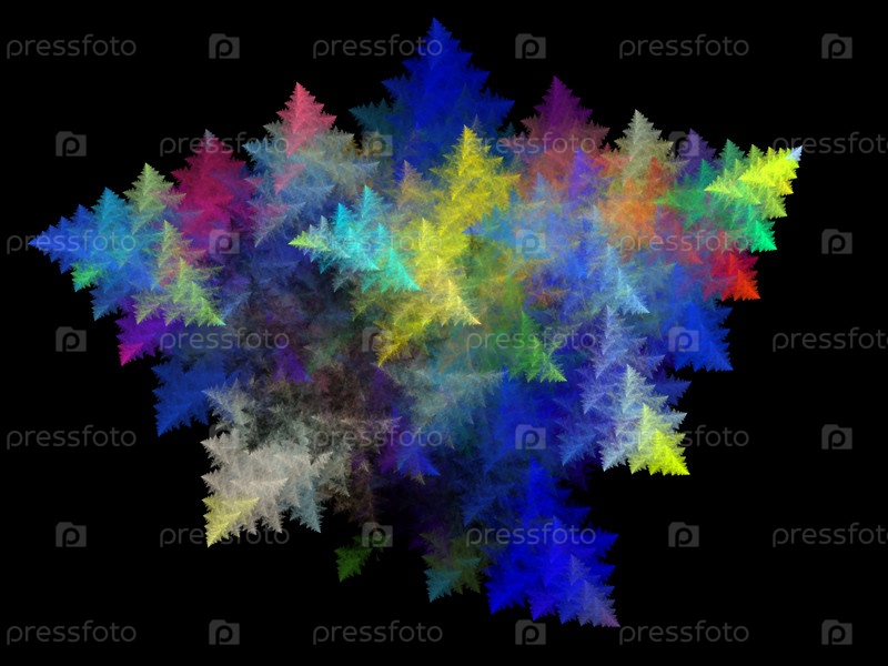 Абстрактный фрактал с красочными колючими облаками на черном фоне