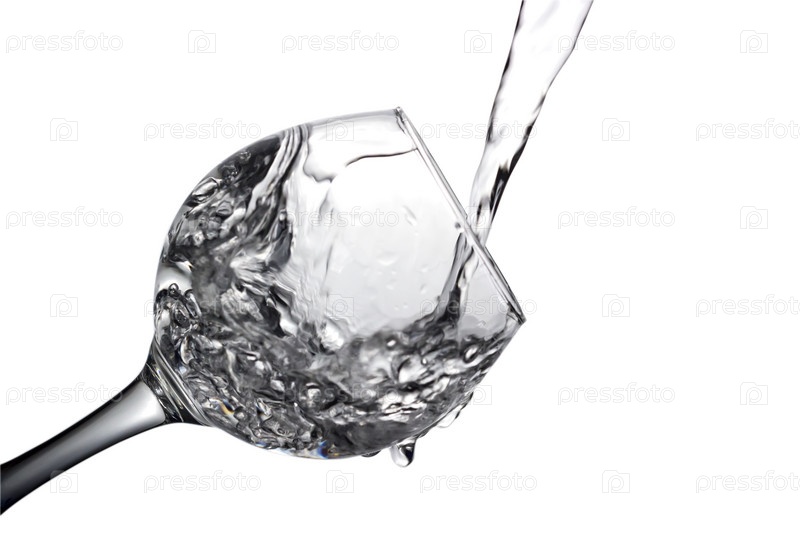 Вода льется в бокал на белом фоне