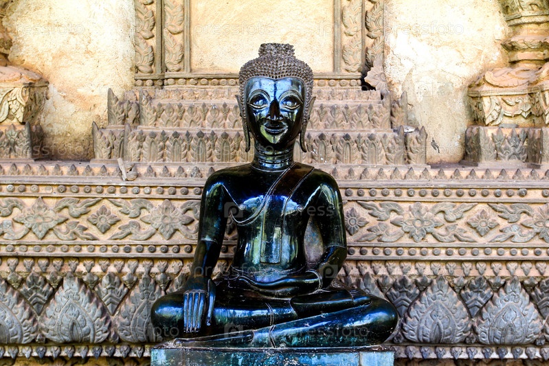 Бронзовая статуя Будды у ограды Пхра Кео, Вьентьян, Лаос