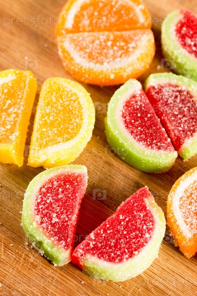 Желейные конфеты на деревянной доске