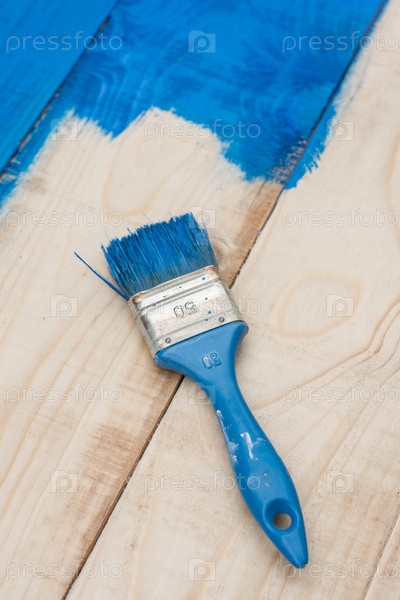 Нанесение кистью синей краски
