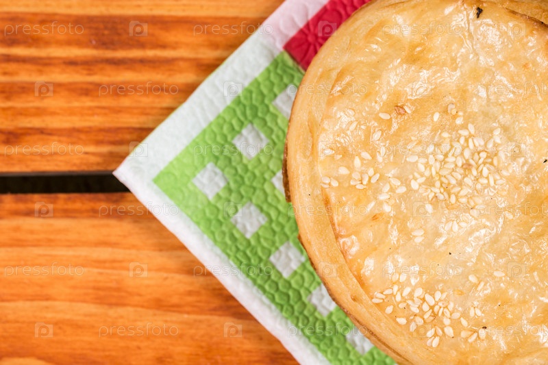Круглая лепешка из слоеного теста с кунжутом