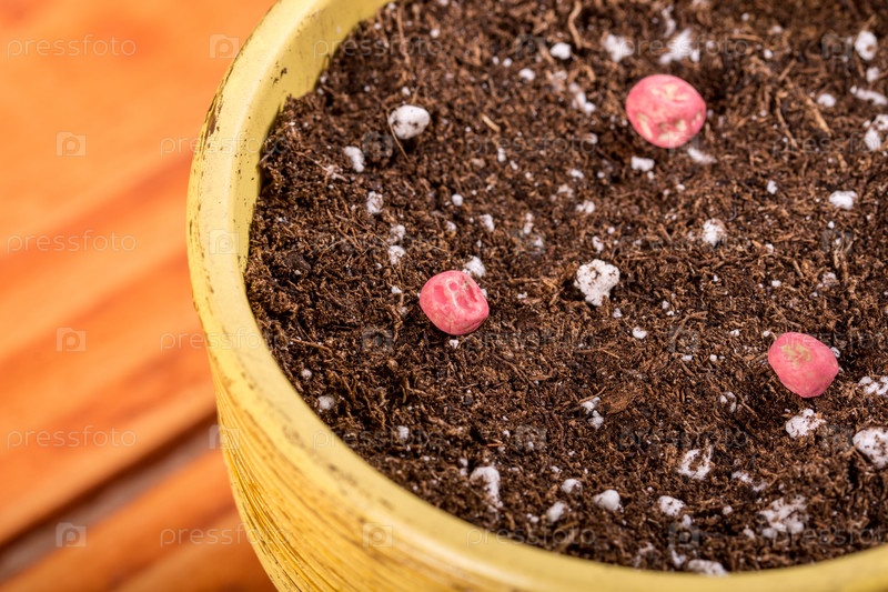 Зеленый горошек в почве в цветочном горшке