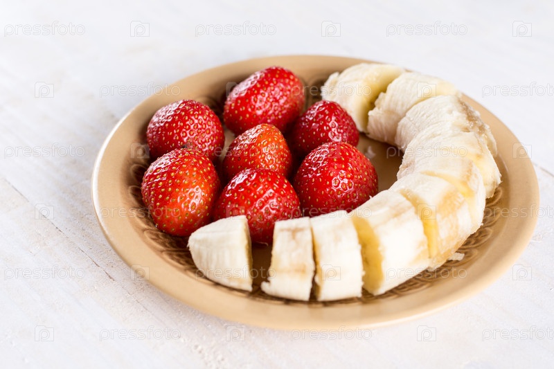 Плоские миряне над клубникой с нарезанным бананом